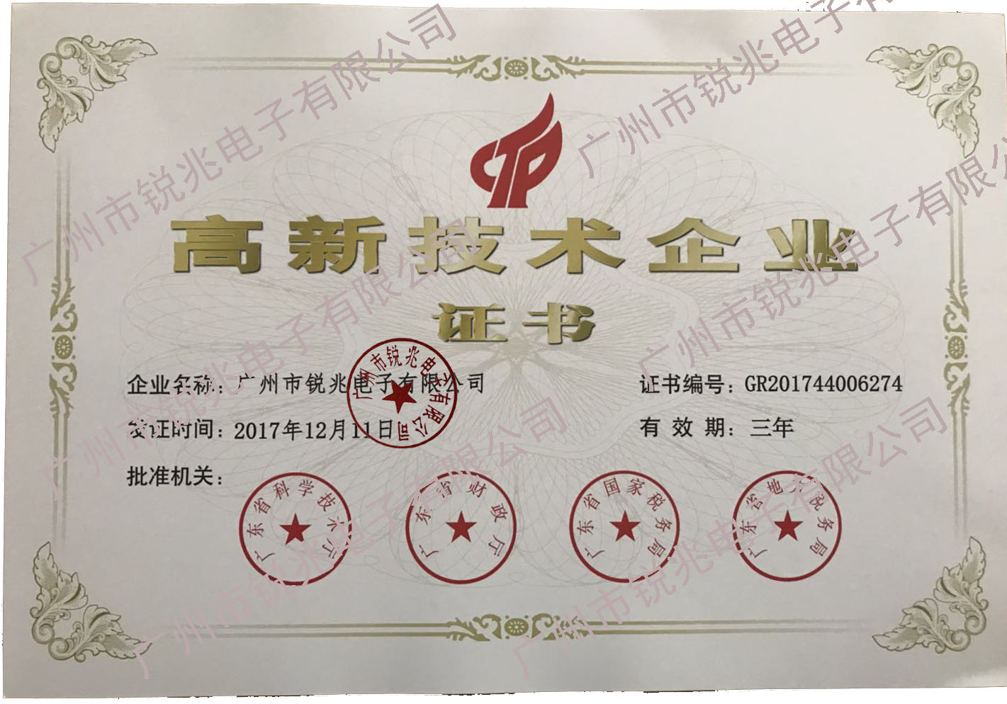 廣州市銳兆電子有限公司榮獲廣東省高新技術企業(yè)